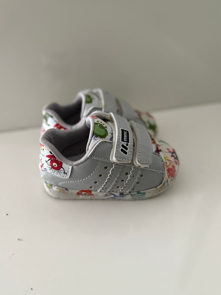 Kız çocuklar için çiçek desenli, cırt cırtlı ve kauçuk tabanlı spor ayakkabılar, rahat ve şık sokak stili için uygundur.