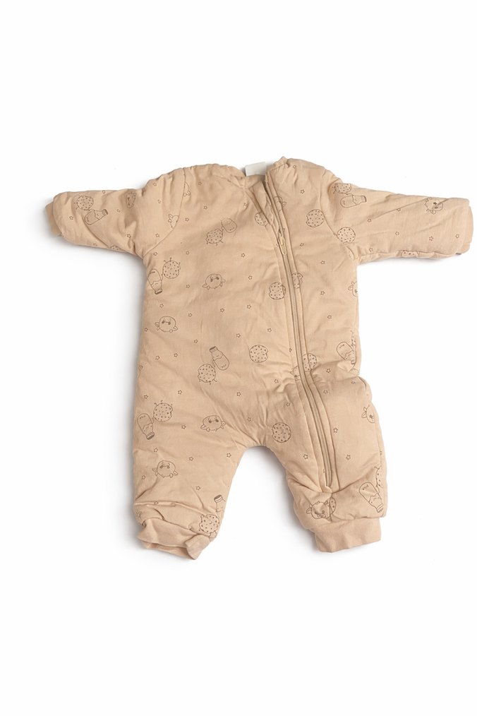 Pastel kahverengi, kürklü detaylı, yakası kesimli kız - erkek bebek uyku tulumu, sıcak ve rahat tutar. 3-6 ay ❄️
