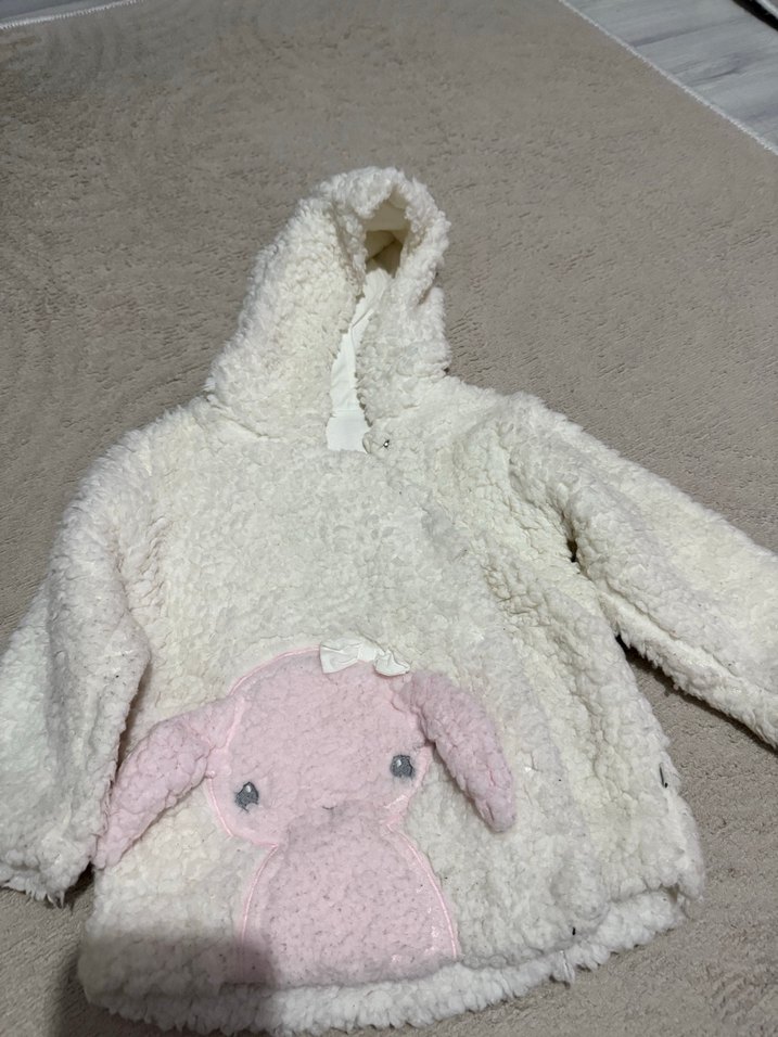 Kız Bebek Kapüşonlu Beyaz Peluş Mont ve ince pembe hırka