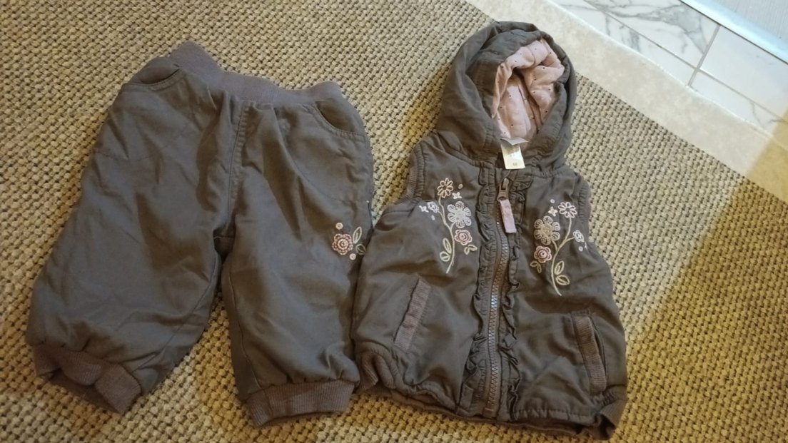Kapüşonlu, fermuarlı kahverengi kız bebek tulumu nakış detaylıdır, yumuşak manşetli ve ceplidir. ❄️3, 6 ay uyumlu