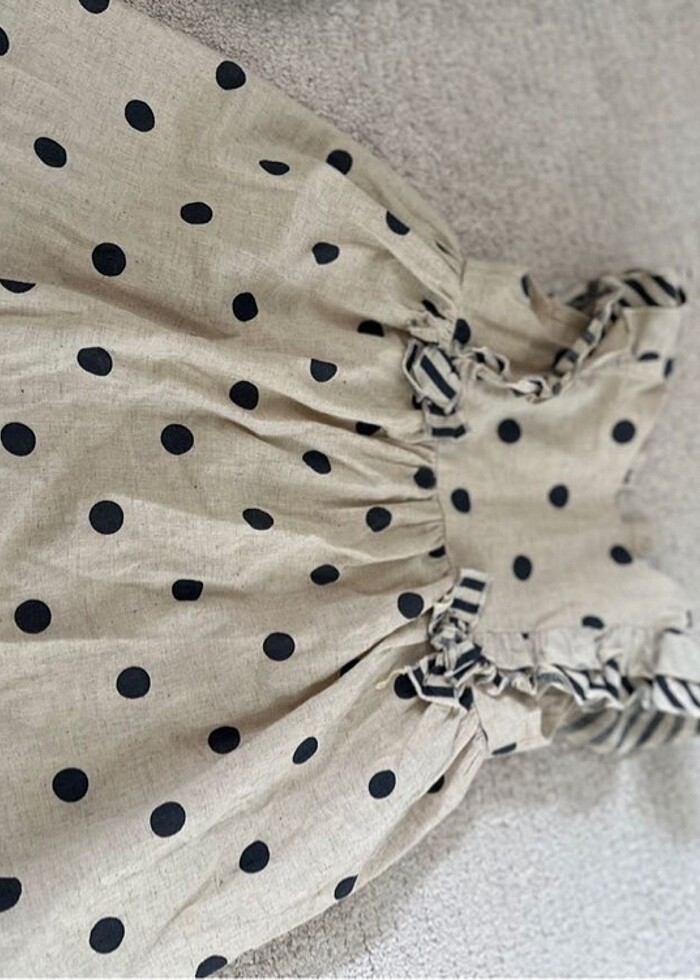 3 yaş ebebek marka keten puantiyeli elbise hiç giyilmemiştir etiketi yok yıkandı