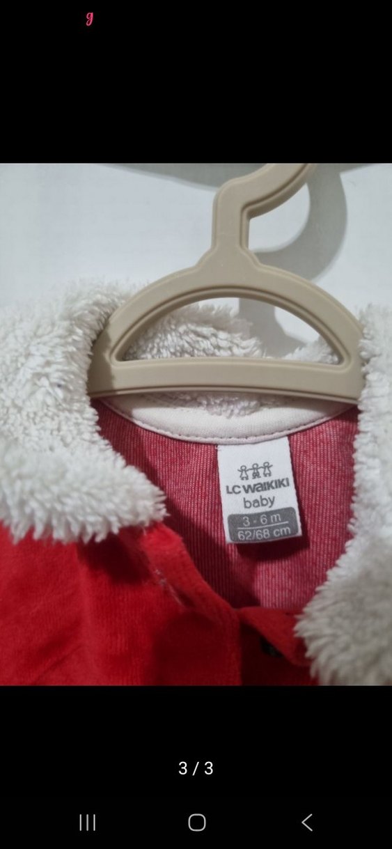 Kız bebekler için 3-6 ay, 62/68 cm ölçüsünde kırmızı desenli, yumuşak ve sıcak iç yüzeyli LC Waikiki bornoz.