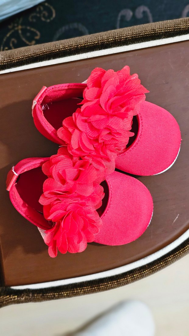 Renkli çiçek desenli fırfırlı, kırmızı kız bebek ilk adım ayakkabısı. Çok az giyildi. tertemiz . deformesi yok.