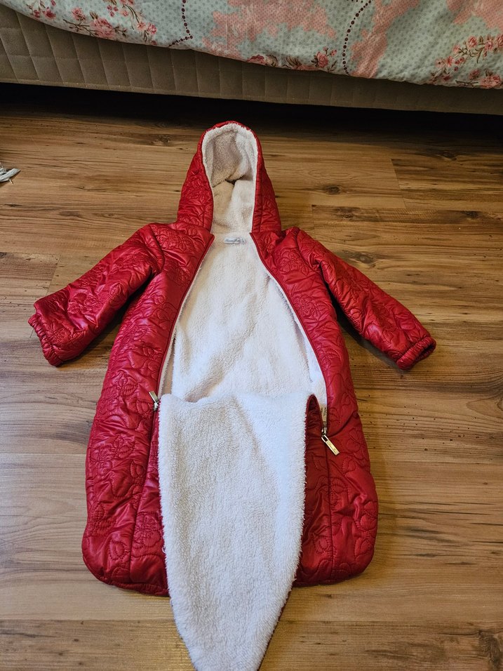Kırmızı renkli, kapüşonlu kız bebek tulumu, uzun kollu ve dar kesimdir. Yumuşak ve sıcak fleece astarı, fermuarlı detaylarıyla dış mekan kullanımı için uygundur. ❄️