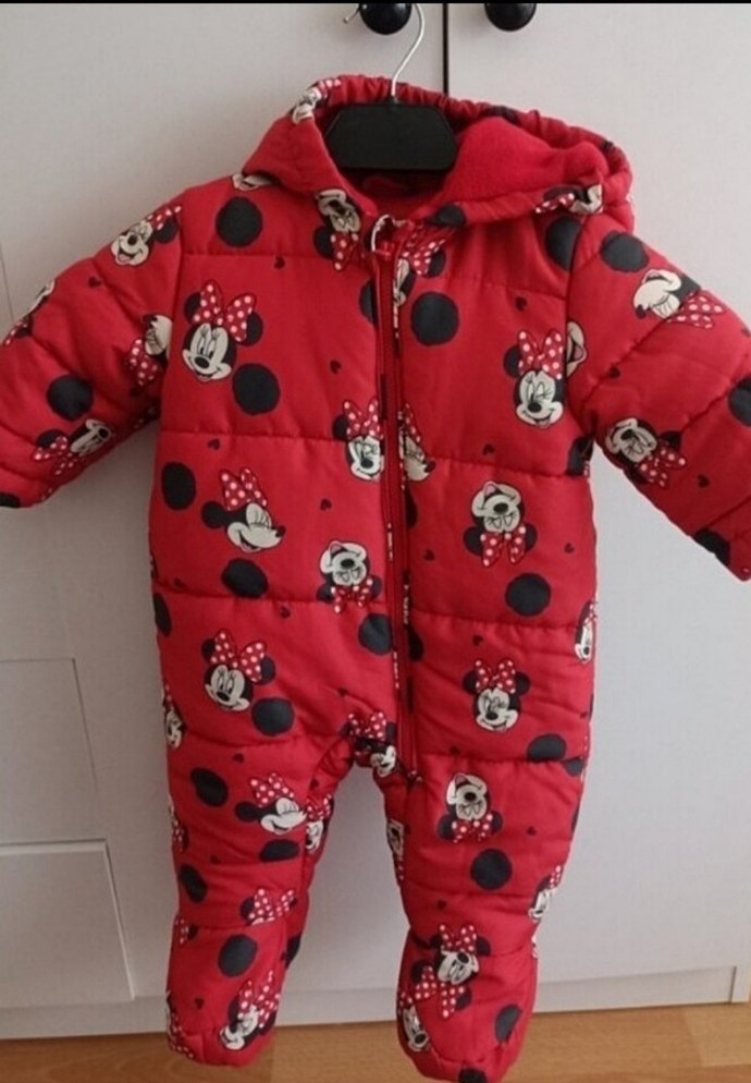 3.6 ay Koyu kırmızı renkli kız bebek kar tulumu, kapüşonlu ve düğmeli. Üzerinde eğlenceli baskılı desenler bulunur, soğuk havalar için uygundur. ❄️