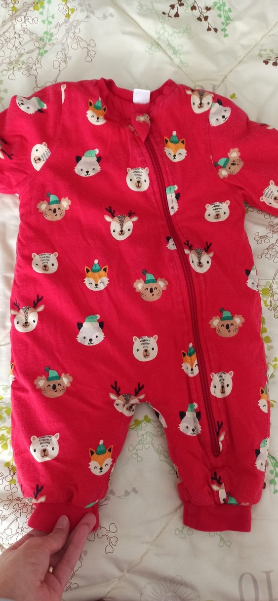 Kırmızı renkli, kürk detaylı ve baskılı desenli kız bebek tulumu. Yuvarlak yakalı ve önden fermuarlıdır. ❄️ 3-6 ay ama kalıbı geniştir 68 cm