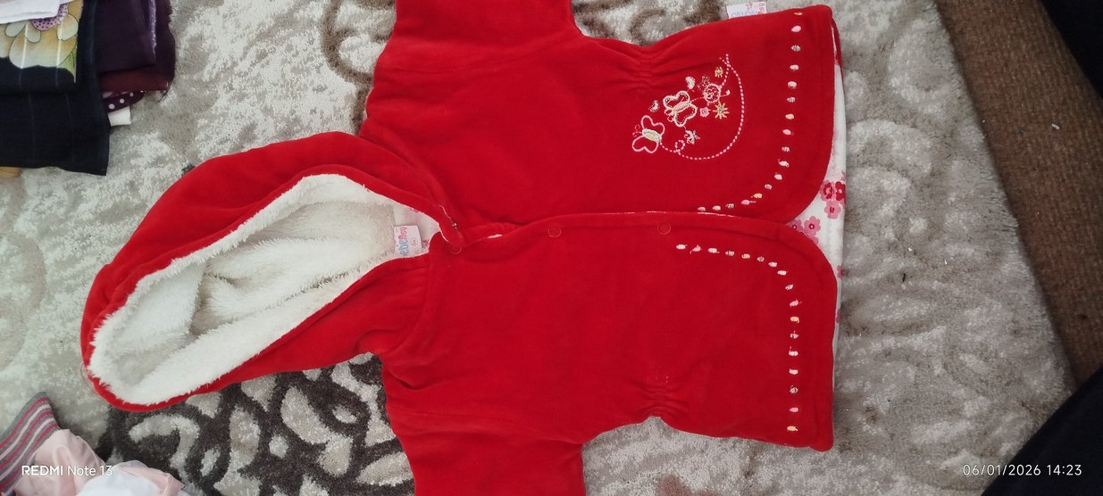 Kız Bebek Kırmızı Nakışlı Düğmeli içi polar mont