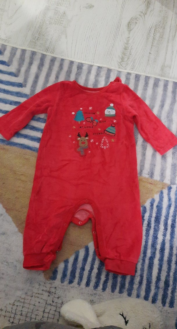 Renkli kırmızı örgü kumaştan yapılmış kız bebek tulumu, uzun kollu ve kolay giydirme için bacaklarda çıtçıtlıdır. Önünde sevimli kış temalı desen bulunur. ❄️