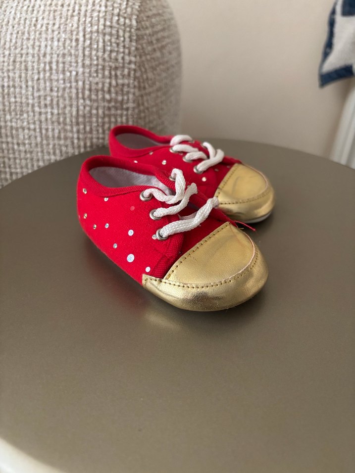 Kız Bebek Kırmızı Puantiyeli İlk Adım Ayakkabısı