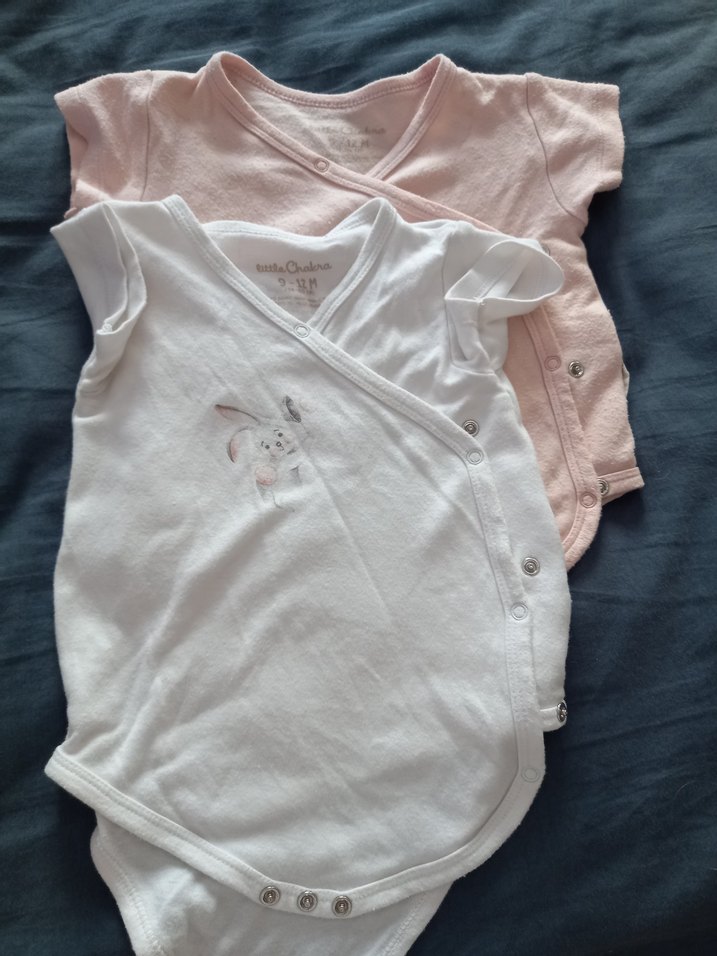 Kısa kollu ve çıtçıtlı iki adet kız bebek body. Beyaz olanında küçük bir tavşan deseni bulunur, diğer pastel pembe renktedir. Yumuşak kumaştan üretilmiştir.