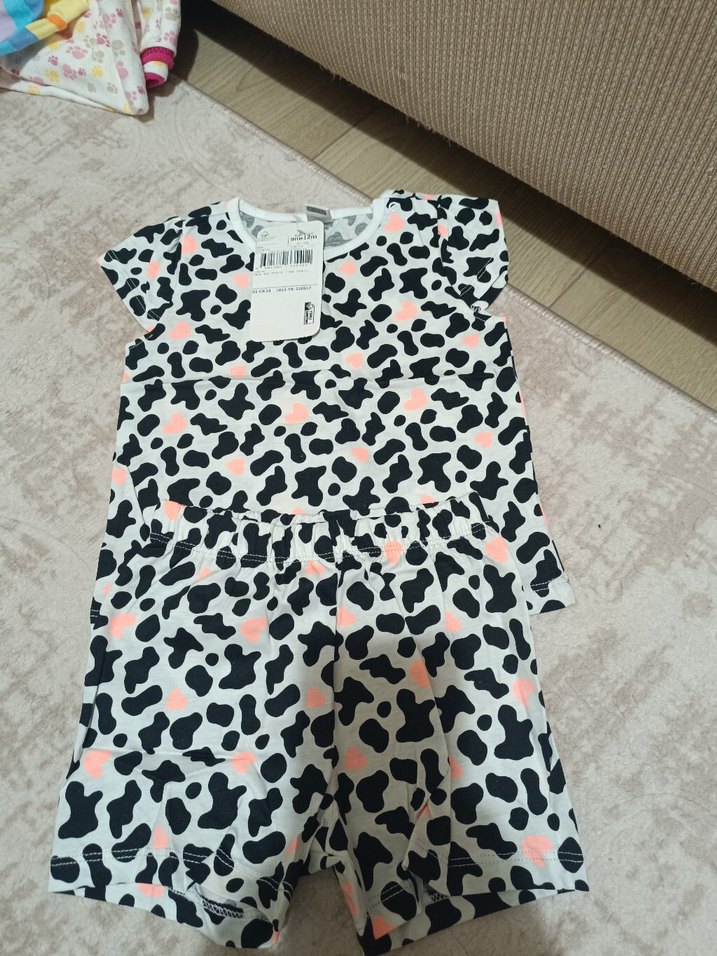 Kız Bebek Kısa Kollu Fırfırlı Desenli Takım