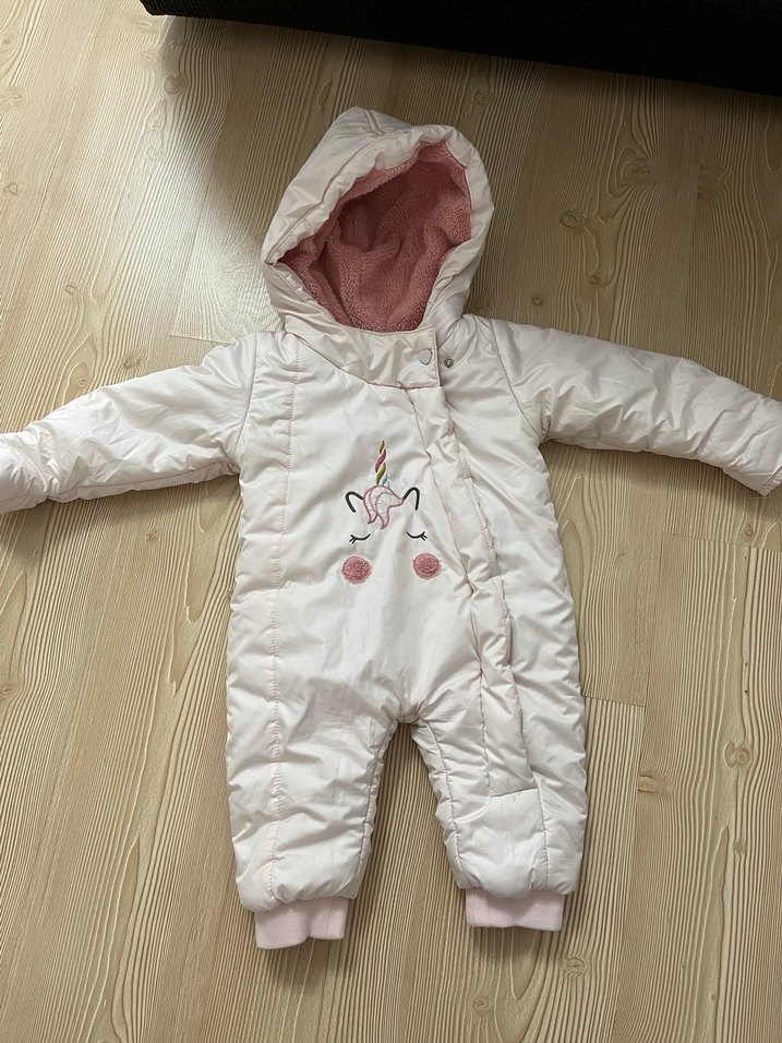 Kürklü detaylar ve nakışlı unicorn desenli, kız bebek tulumu. Notch yaka ve pastel tonlarla, içi yumuşak ve sıcak astarlıdır. ❄️