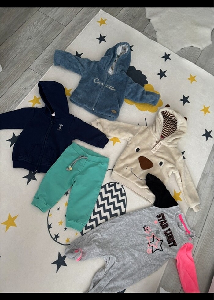 Krem Sweat satıldı . Mavi ceket6-9 aylık dıgerlerı 9-12 aylık çok ıyı durumda