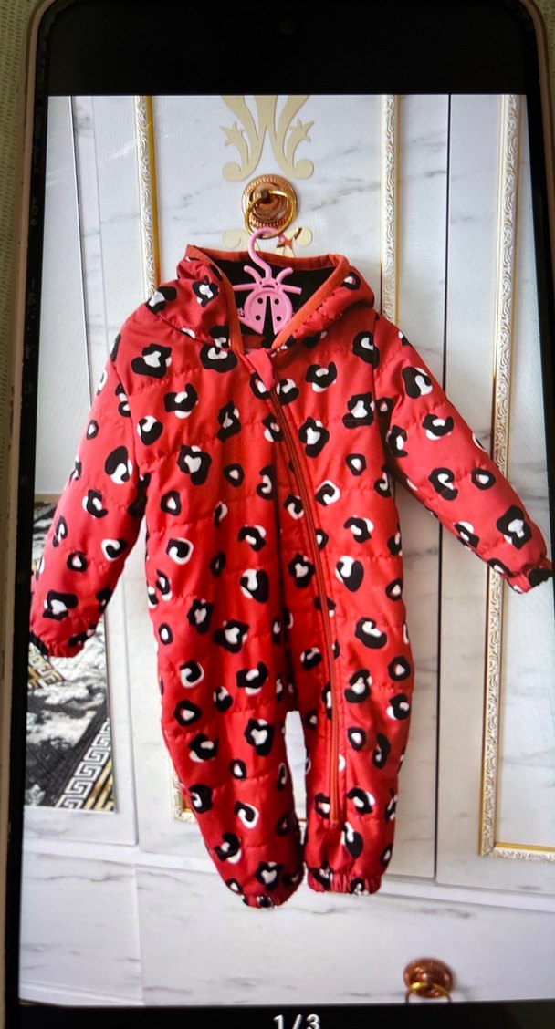 Renkli kırmızı leopar desenli kapüşonlu kız bebek tulumu, kürk detaylı ve sıcak tutar. ❄️