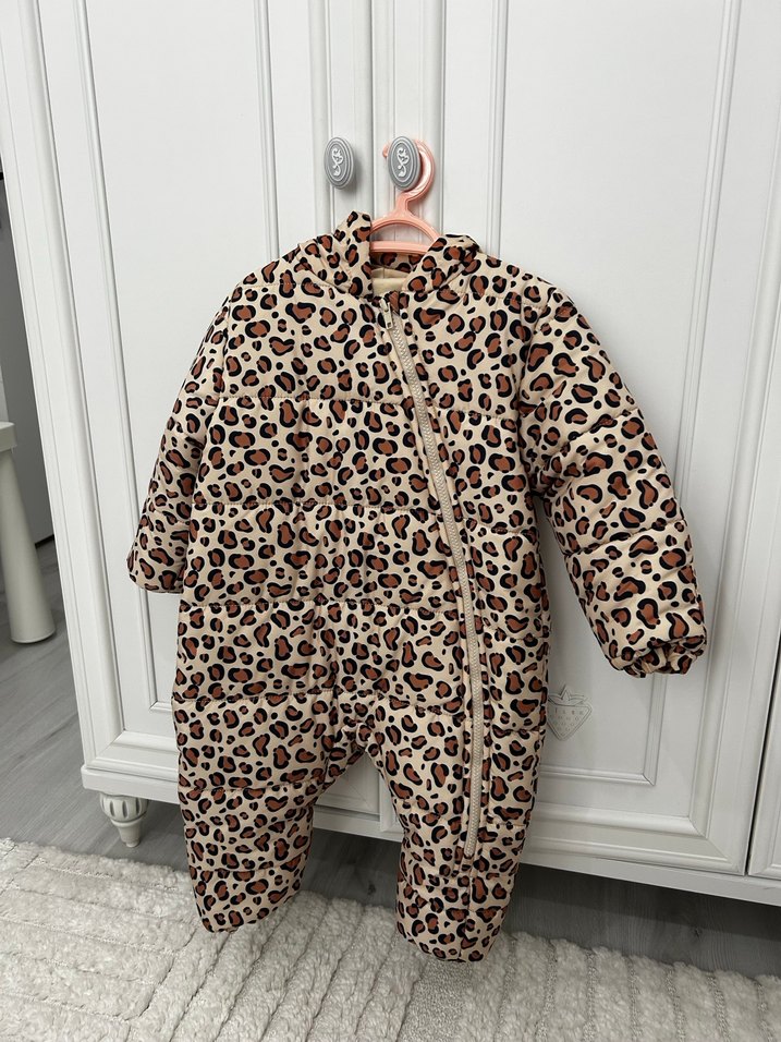 Koyu kahverengi leopar desenli,kesik yaka ile tasarlanmış kız bebek tulumu. Soğuk havalar için sıcak tutar. 1 kere bile giyilmedi sıfırdır sorunu yoktur. Kızımın yaşına göre denk gelmedi o yüzden giyilmedi. Ellerinde eldiven oluyor istersen açılıyorda ayakları açıktır patikli değildir