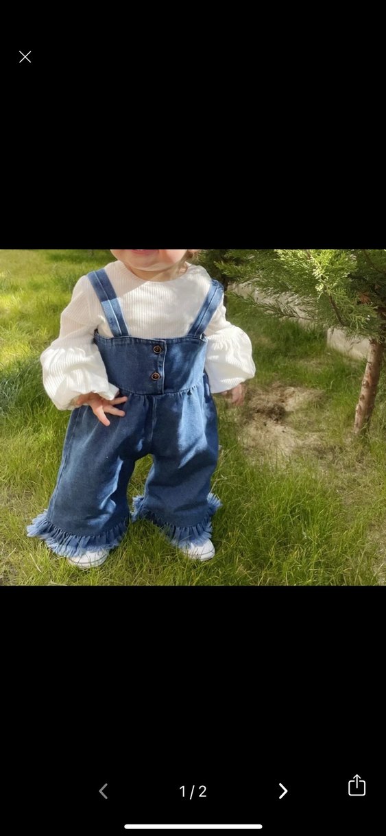 Mavi denim kumaştan, bol kesim ve fırfırlı detaylı kız çocuk tulumu. Uzun kollu ve pastel tonlarda tie-dye desenlidir. Rahat ve sade tarzda.