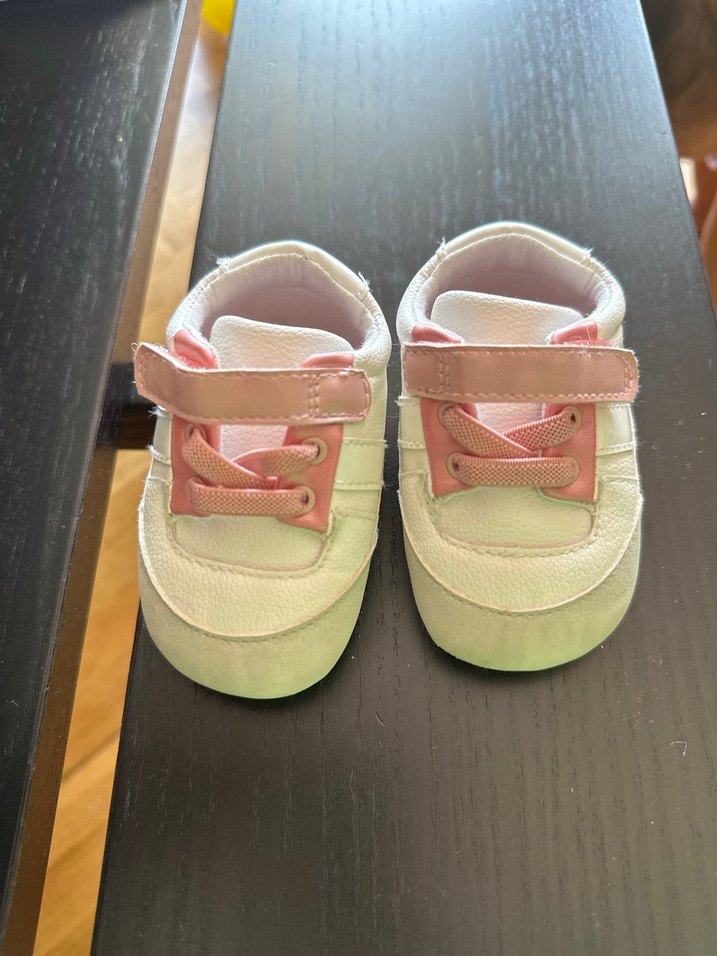 Kız çocukları için pastel pembe renkte, lastik tabanlı ve kolay kapanan cırt cırtlı spor ayakkabılar. Desensiz, sade tasarıma sahiptir.