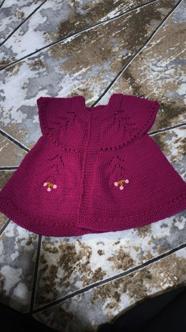 Kız Bebek Mürdüm Renkli Nakışlı El Örgüsü Yelek