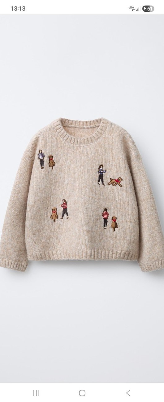 12 18 ay bej triko kazak, bisiklet yaka ve uzun kollu olup nakışlı figürlerle süslenmiştir. Salaş kesimi ve midi boyu ile gündelik sokak stiline uygundur.