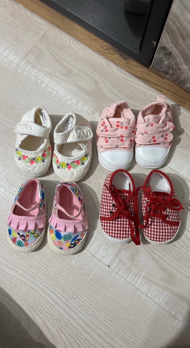 Nakışlı desenler ve volan detaylı, renkli pamuklu kız bebek ilk adım ayakkabıları, bohem tarzda. 0-6 ay 17/18 ayrı ayrı da alabilirsiniz