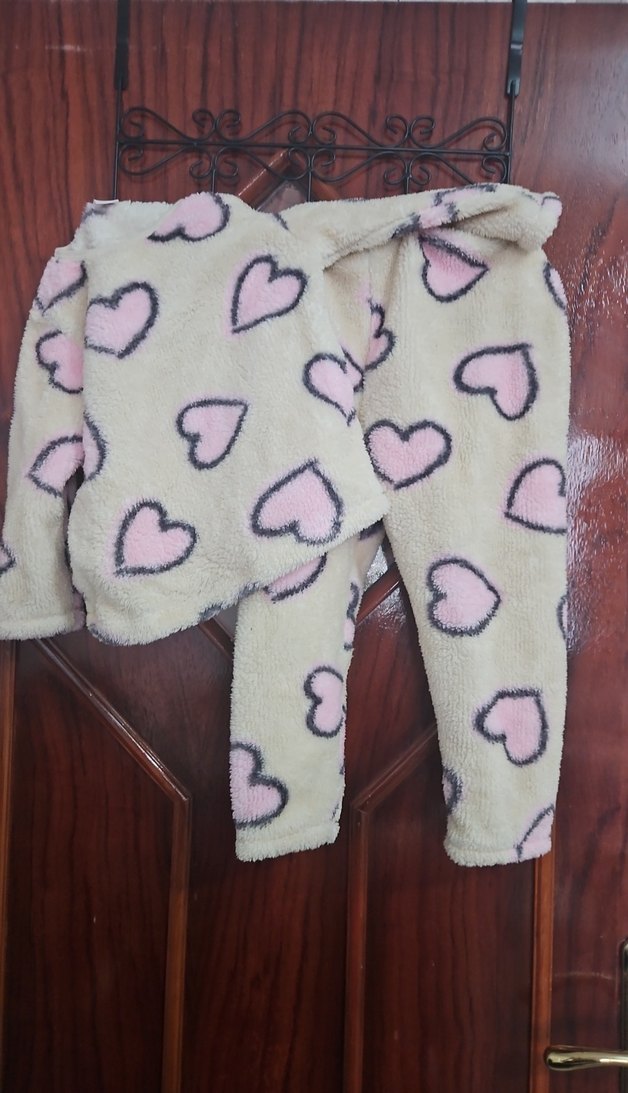Kız Bebek Peluş Kalpli Uzun Kollu Takım