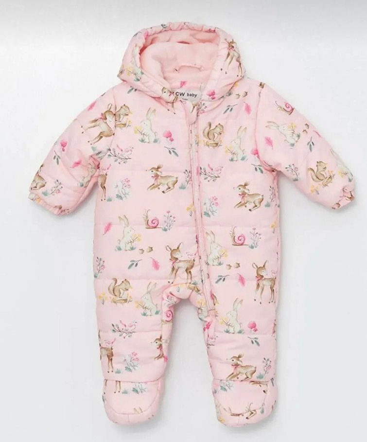 Pastel pembe renkte, orman hayvanları desenli kız bebek tulum kozmonot. Kapüşonu ve içi yumuşacık polarlı ve kolay giydirme için önden fermuarlı. LCW Baby marka. Yeni gibi duruyor. Kar kış soğuk kesinlikle işlemiyor bebeğim sayılı giydi sıcacık ve mükemmel bir tasarım. Kaçırılmayacak fırsat. Alıcısına şimdiden hayırlı olsun… ☃️❄️