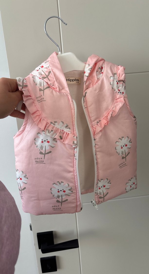 Kız bebek Pembe Çiçekli Fırfırlı Yelek