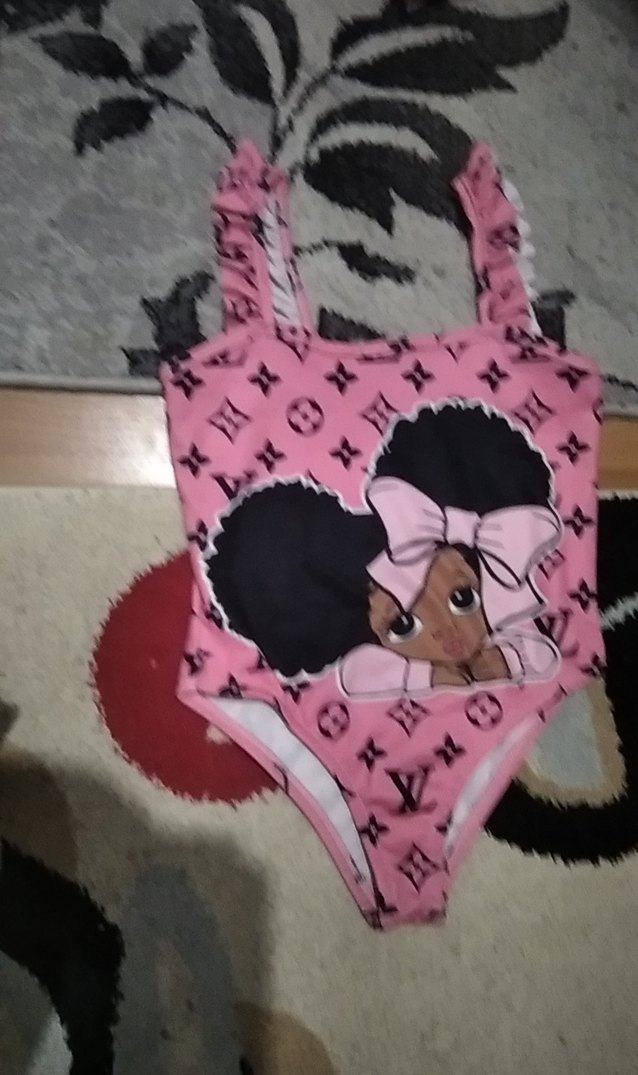 Pembe renkli kız bebek body, desenli ve V yakalıdır. Ayarlanabilir tokalı askıları vardır.