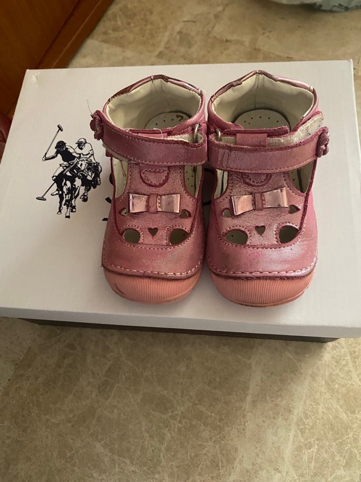 Kızlar için pastel pembe, tokalı ve yumuşak kauçuk tabanlı ilk adım ayakkabısı.