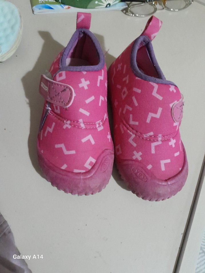 Kız çocukları için renkli tie-dye desenli, cırt cırtlı, pembe kauçuk ilk adım ayakkabısı.