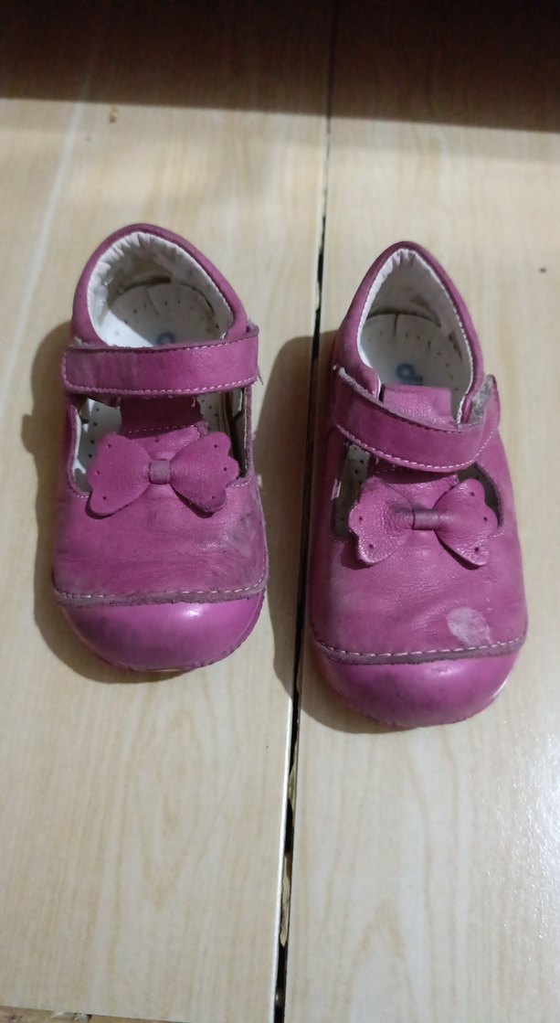 Pembe renkli, lastik malzemeden yapılmış, tokalı ve sade fiyonk detaylı kız bebek ilk adım ayakkabısı. Yumuşak pastel tonlarda, klasik tarzda.