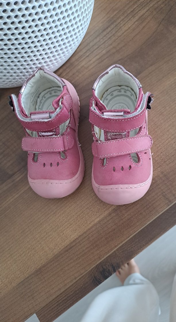 Pembe tonlarda, cırt cırtlı ve kauçuk tabanlı kız bebek ilk adım ayakkabısı. Rahat ve destekleyici yapıda.