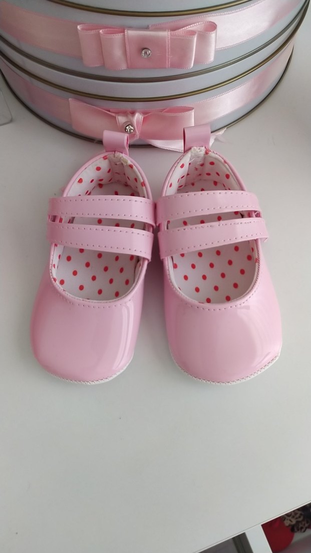 Kız bebekler için pembe, tokalı, düz tasarımlı ilk adım ayakkabısı. Yumuşak kauçuk benzeri malzemeden, renkli iç astarlı.