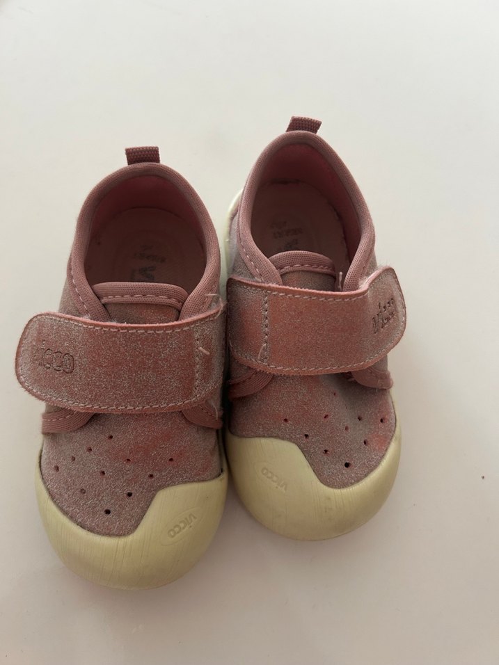Pastel pembe, lastik tabanlı ve Velcro kapamalı kız bebek ilk adım ayakkabısı. Trendy casual sokak stili için uygun, desensiz ve kolay giyilir.