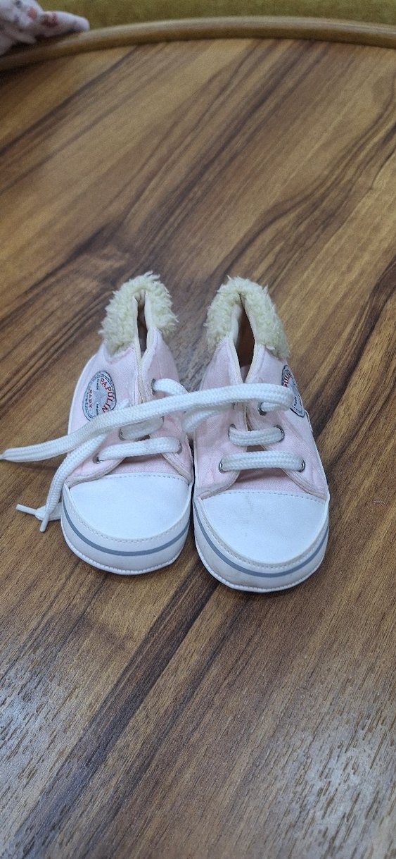 Pembe renkte, kürklü detaylı, yumuşak kumaştan yapılmış kız bebek ilk adım ayakkabısıdır. Rahat ve sıcak tutar.hic kullanilmadiz 2temiz