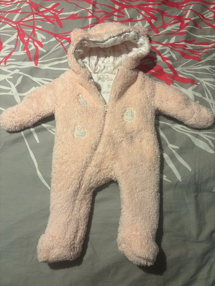 Pastel pembe renkli, andywawa marka tulum çokk az giydirildi kalın dış giyim