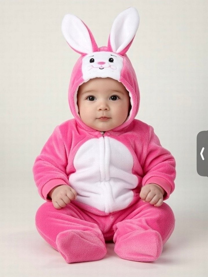 Kız bebek tulumu, yumuşak kürk detayları ve renkli nakışlara sahiptir. Kapüşon ve ön kısmında sevimli tavşan figürü bulunur.