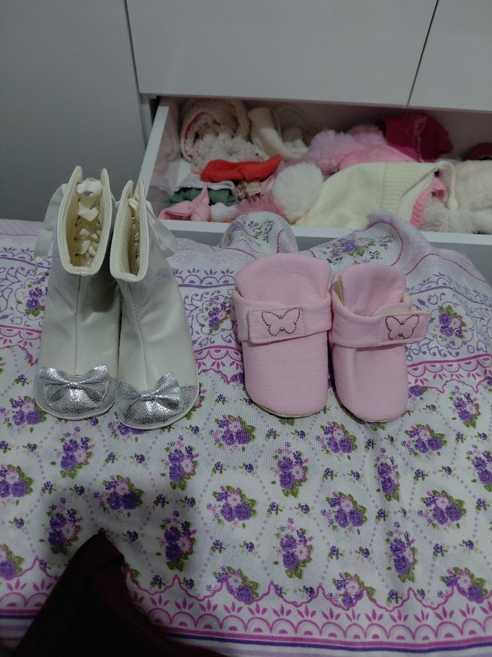Pembe triko kız bebek ilk adım ayakkabısı, nakışlı kelebek ve dantel detaylarıyla sade, klasik tasarım sunar. ayrı ayrı dır fiyat sorunuz