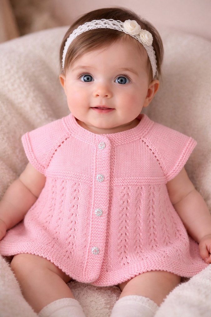 Pembe renkli, kolsuz ve fitted kesim örgü bebek hırka, düğmeli ön kapama ve yumuşak dokusu ile rahat kullanım sağlar. Ürünümüz 12 aylık bebeklere kadar uygundur .