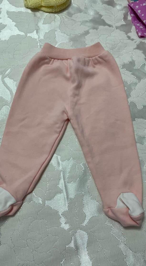 Yumuşak ve sıcak kumaştan yapılmış, sade tasarımlı kız bebek pembe pantolon.