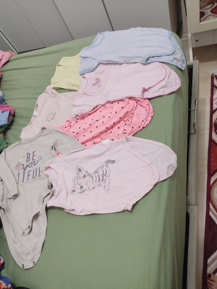 7 adet Pastel pembe renkli, uzun kollu ve düğmeli kız bebek pijaması, yumuşak tekstil kumaştan üretilmiştir. Askısız yakaya sahiptir.