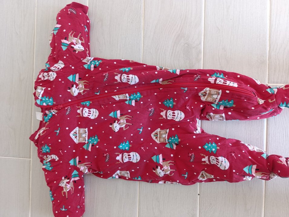 Kız bebek için renkli, kırmızı fermuarlı tulum. V yaka ve kar temalı baskılı desenlere sahiptir. ❄️