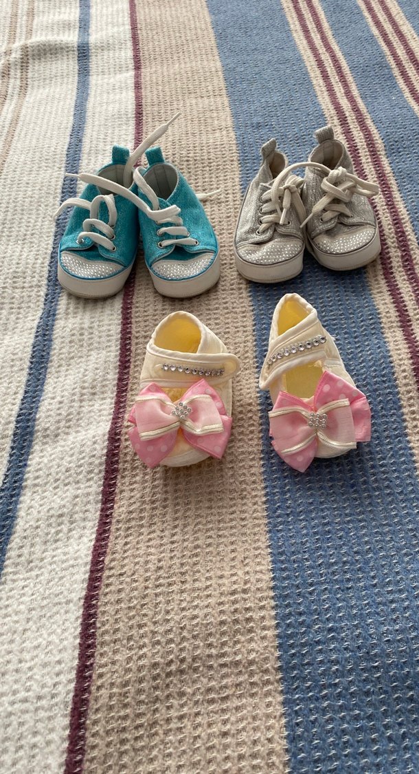 Kız bebekler için pastel renklerde, yumuşak örme kumaştan yapılmış ilk adım ayakkabıları. Fiyonk detaylı, sade ve desen içermeyen normcore tarzda.