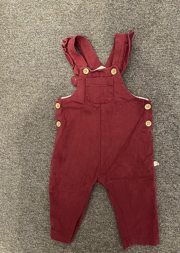 İyi durumda koyu pembe tonlarında yanları düğmeli salopet