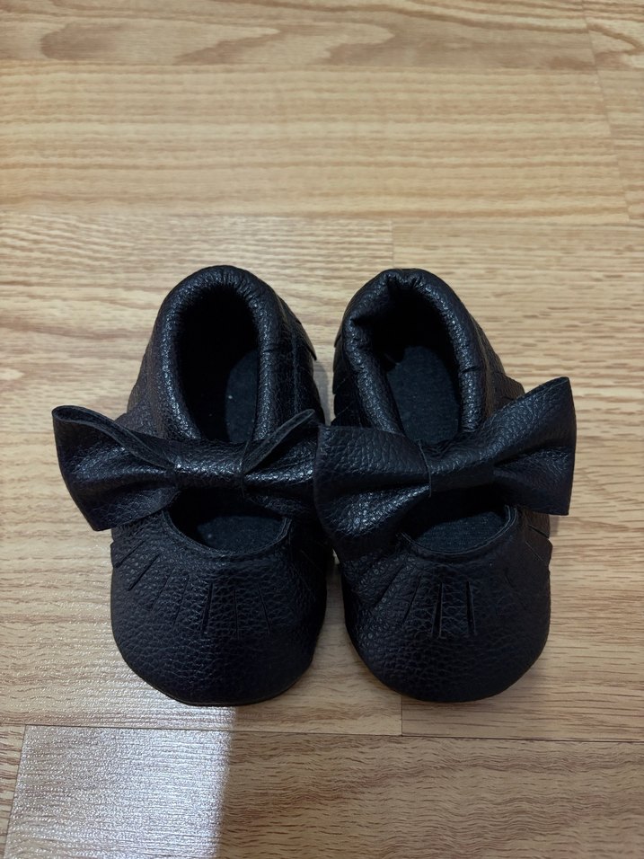Kız Bebek Siyah Fiyonk Detaylı İlk Adım Ayakkabısı