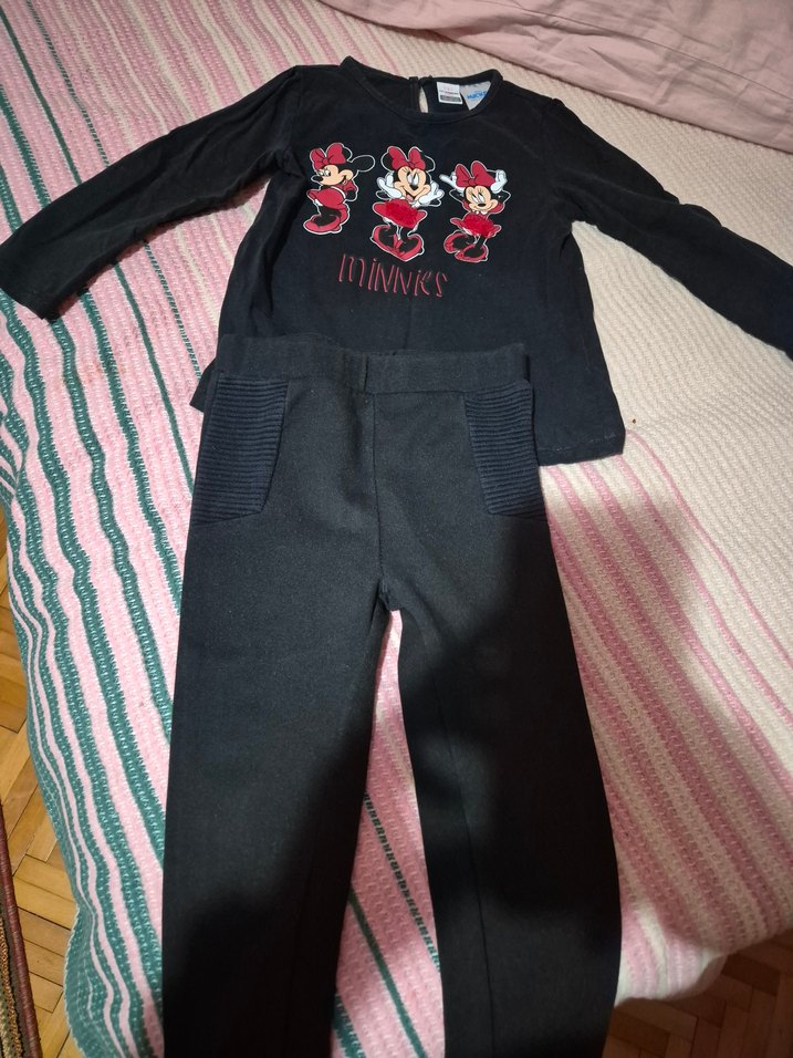 Uzun kollu siyah üstünde Minnie Mouse baskılı, "INNKS" yazılı ve triko siyah pantolondan oluşan kız bebek kıyafeti tekli ürünlerdi takım olarak ilan açtım tek olarak alabilirsiniz \