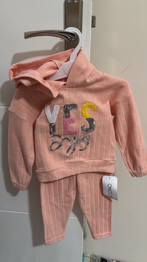 Pastel pembe somon rengine de benziyor Etiketli kapüşonlu takım askısı ile gönderirim