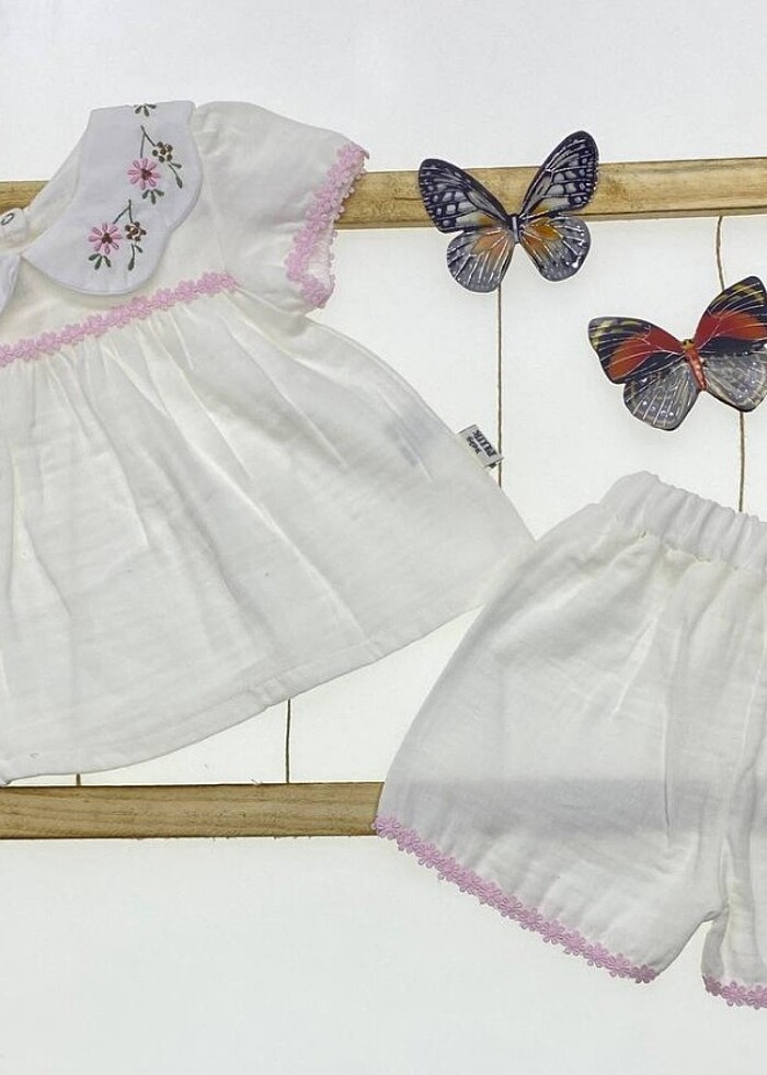 Kız bebek müslin kumaş takım 6/9 9/2 12/18 18/24 ay bedenler mevcut Stokta Beyaz ve Pembe Renk mevcutt