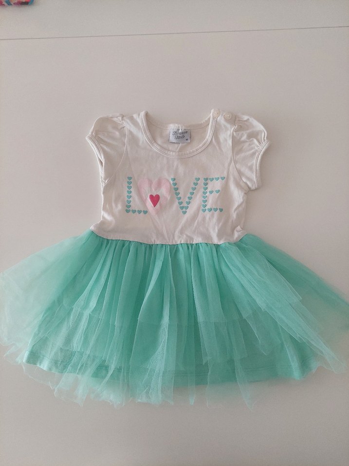 Kız bebek tütülü elbise üst kısmı ve turkuaz katmanlı tül etekle rahat ve şık.3/6 ay