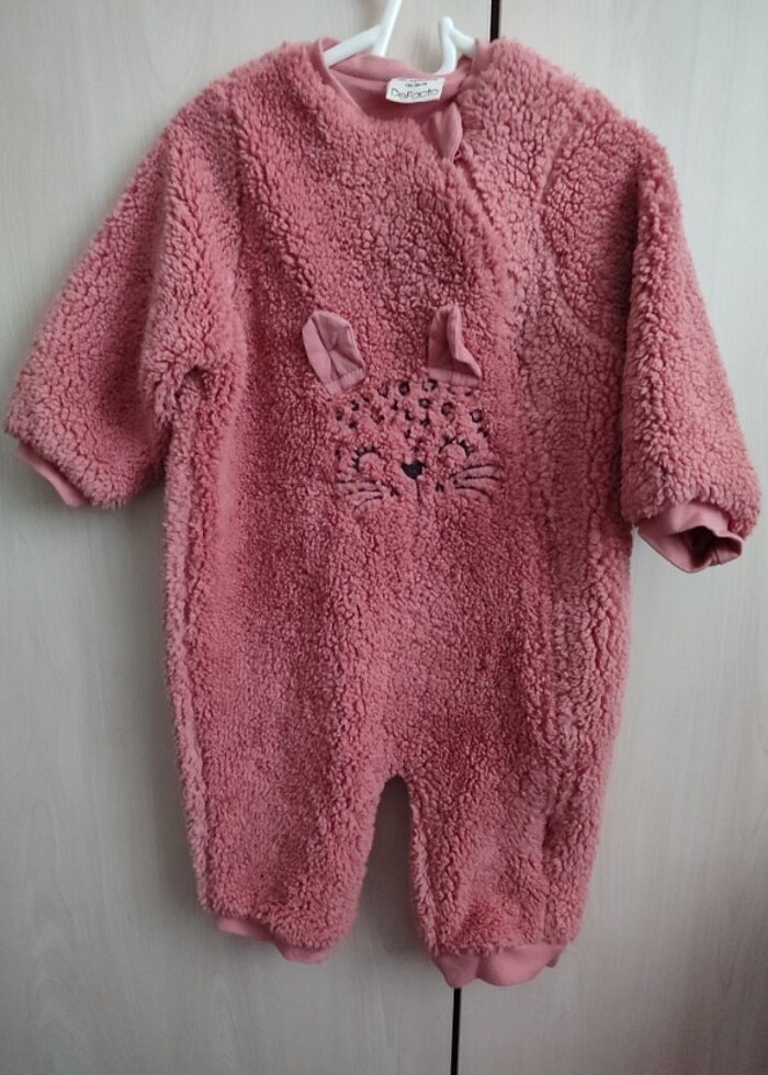 İçi penye astarlı kız bebek peluş tulum. 2-3 kez giyildi .herhangi bir sorunu yok yeni gibidir.